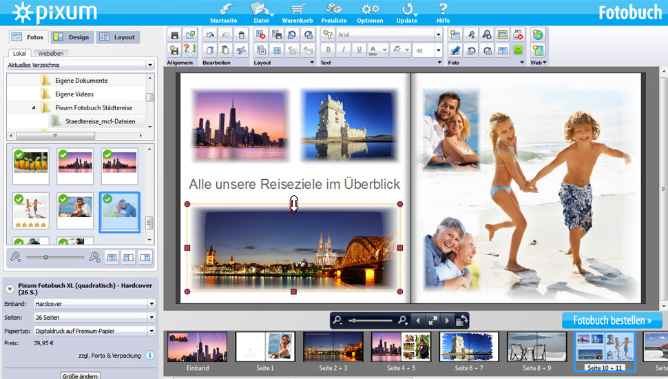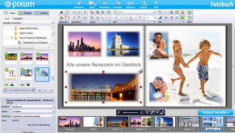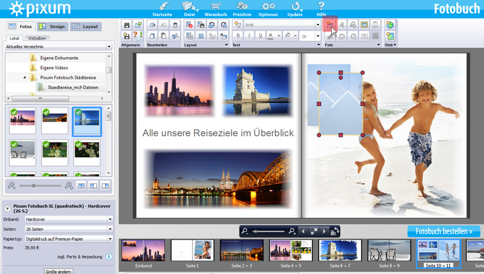 Wählen Sie zuerst in der Fotobuchübersicht die Seite aus, auf der ein Bild ausgetauscht werden soll.