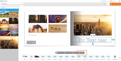 Bei der Gestaltung deines Pixum Fotobuches über den Online-Designer auf unserer Webseite kannst du über die Schaltfläche "Textfläche hinzufügen" einen Textbereich einsetzen. Dieser erscheint an einer beliebigen Stelle auf der aufgeschlagenen Doppelseite.